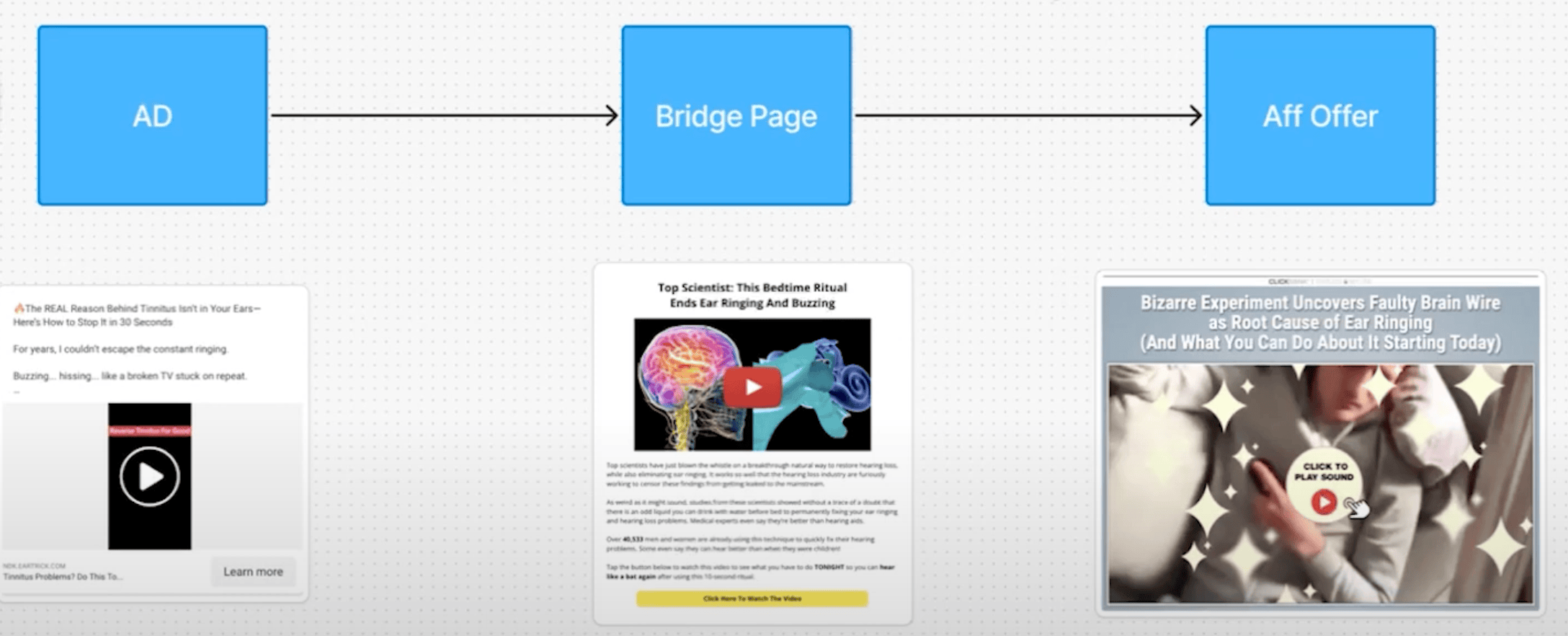 This is where you run a Facebook ad that sends people to a "bridge page" with your affiliate link.